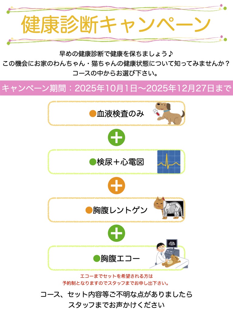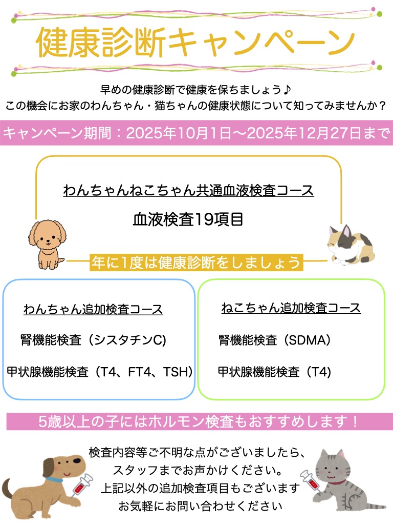 この機会にご自宅のわんちゃん、猫ちゃんの健康チェックをしてみませんか?